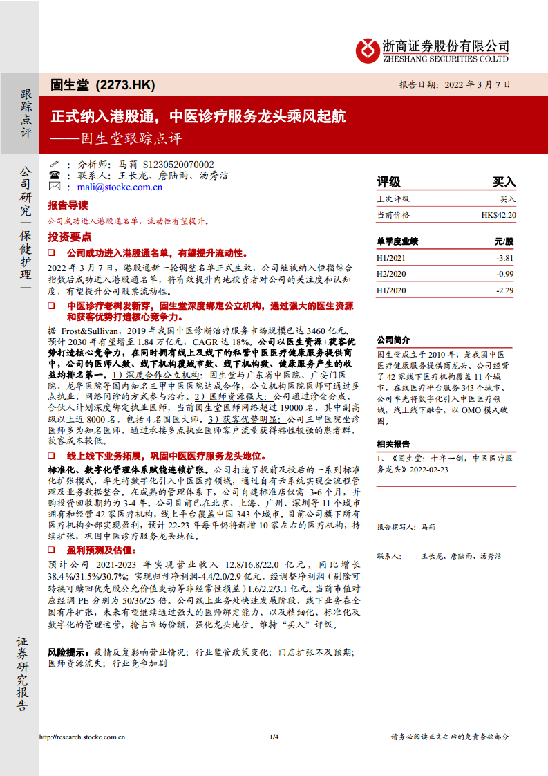 固生堂(02273)跟踪点评:正式纳入港股通,中医诊疗服务龙头乘风起航