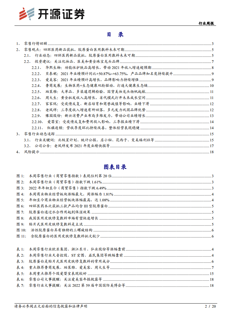 行业周报:四环医药新品获批,胶原蛋白医用敷料未来可期