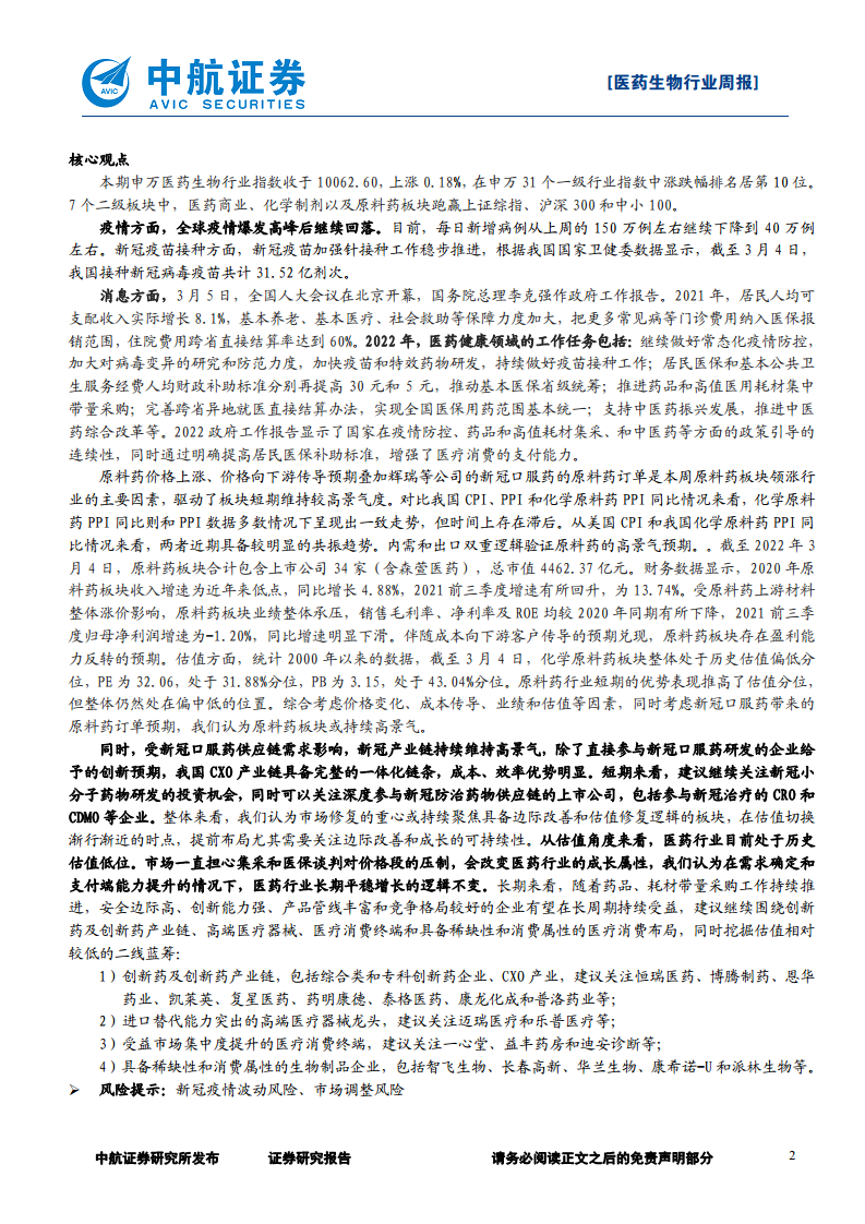 医药生物行业周报:撑原料药高景气两会确定提高医保补助标准,通胀逻辑支撑原料药高景气