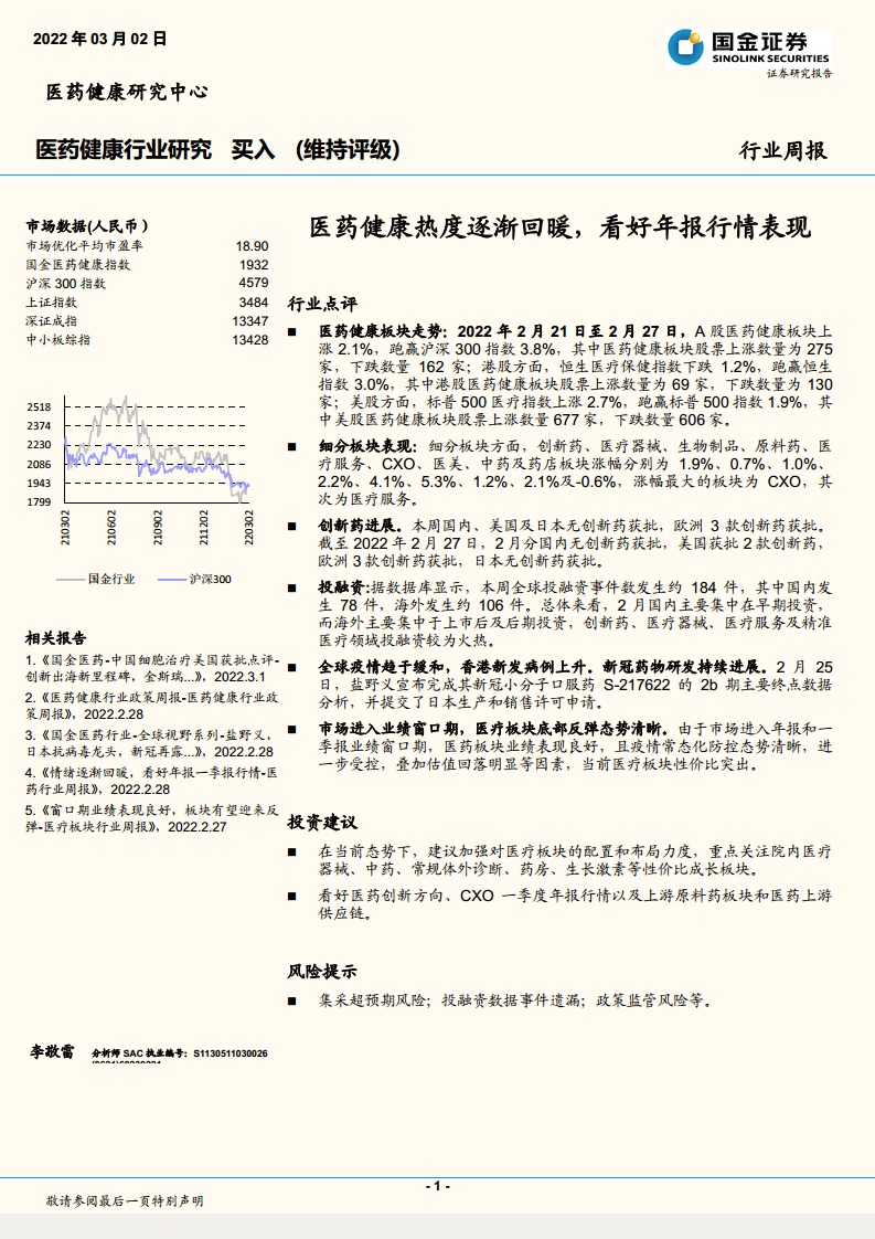 医药健康热度逐渐回暖,看好年报行情表现