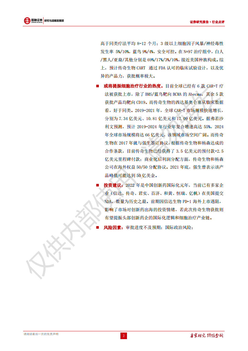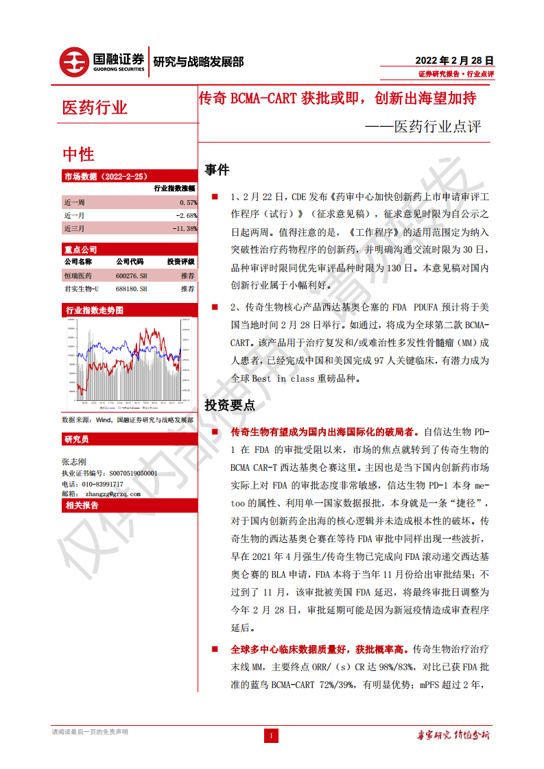 医药行业点评:传奇BCMA-CART获批或即,创新出海望加持