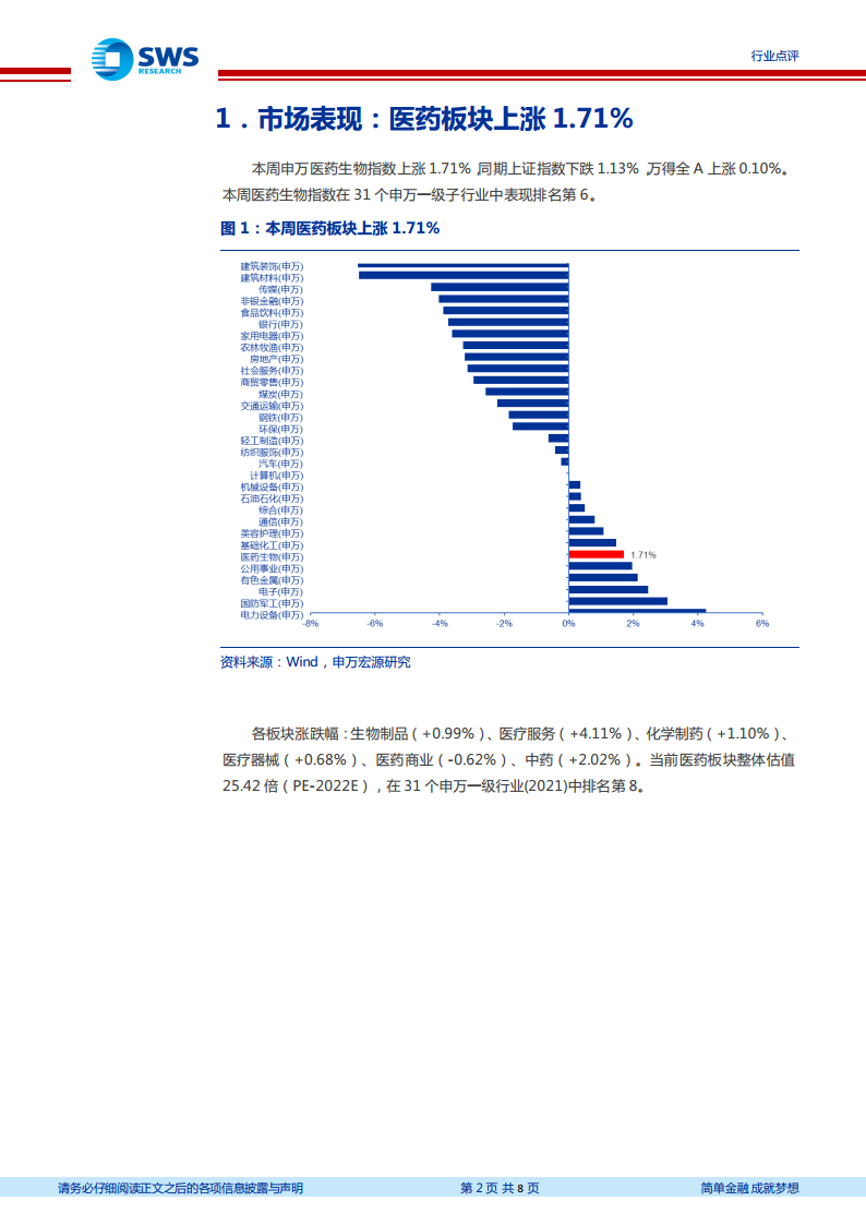 医药行业周报:本周医药上涨1.71%,多因素下板块景气度逐步回升