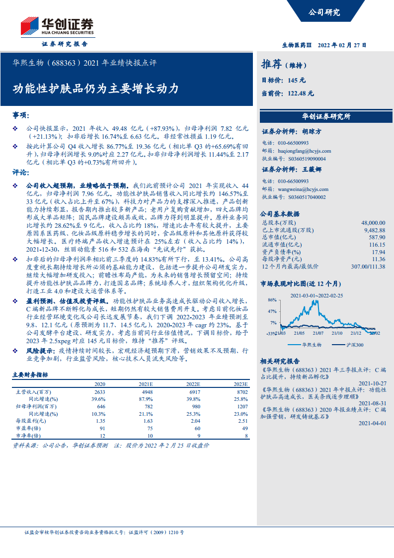 华熙生物(688363)2021年业绩快报点评:功能性护肤品仍为主要增长动力