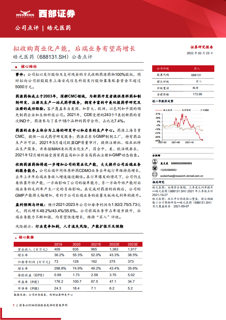 皓元医药(688131):拟收购商业化产能,后端业务有望高增长