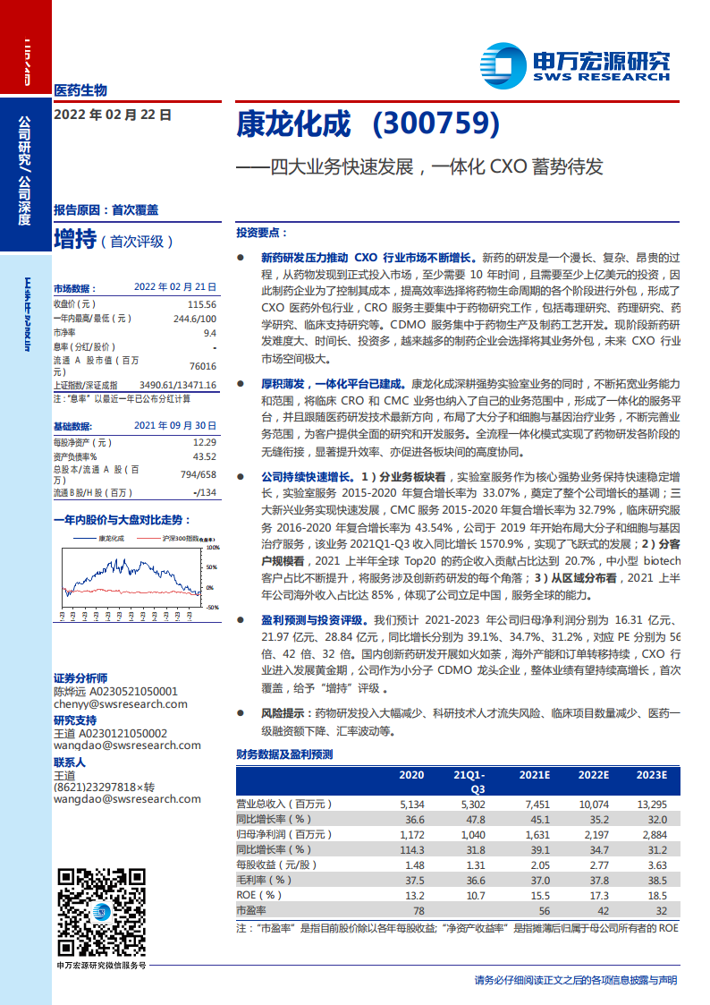 康龙化成(300759):四大业务快速发展,一体化CXO蓄势待发