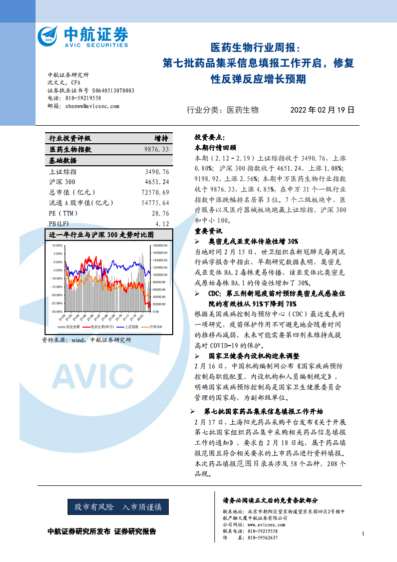 医药生物行业周报:第七批药品集采信息填报工作开启,修复性反弹反应增长预期