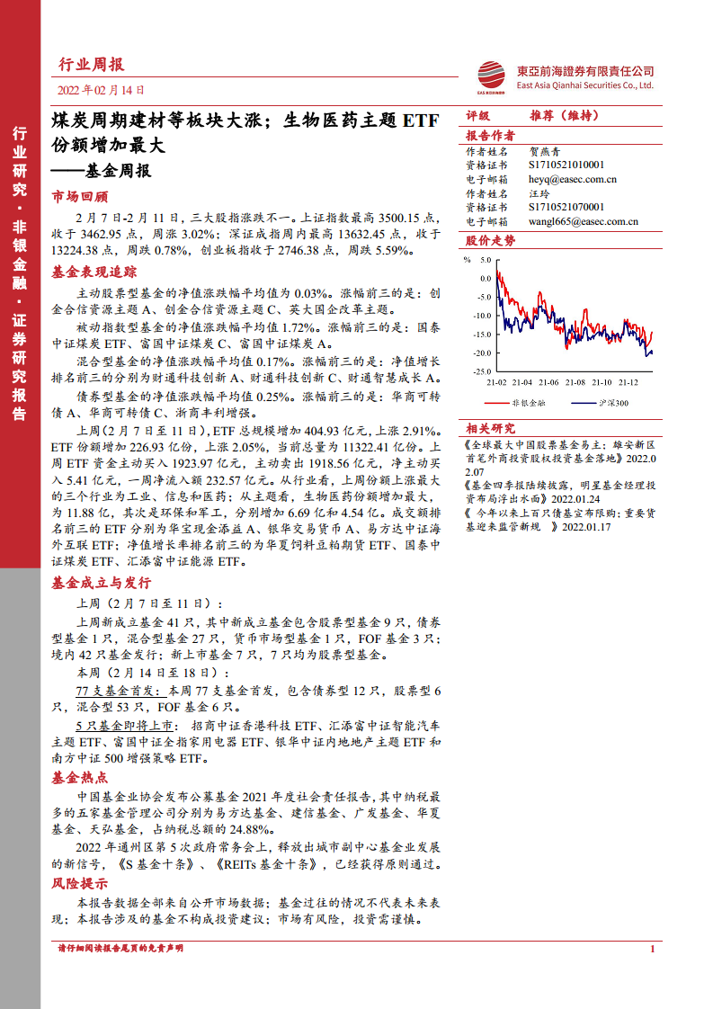 基金周报:煤炭周期建材等板块大涨;生物医药主题ETF份额增加最大