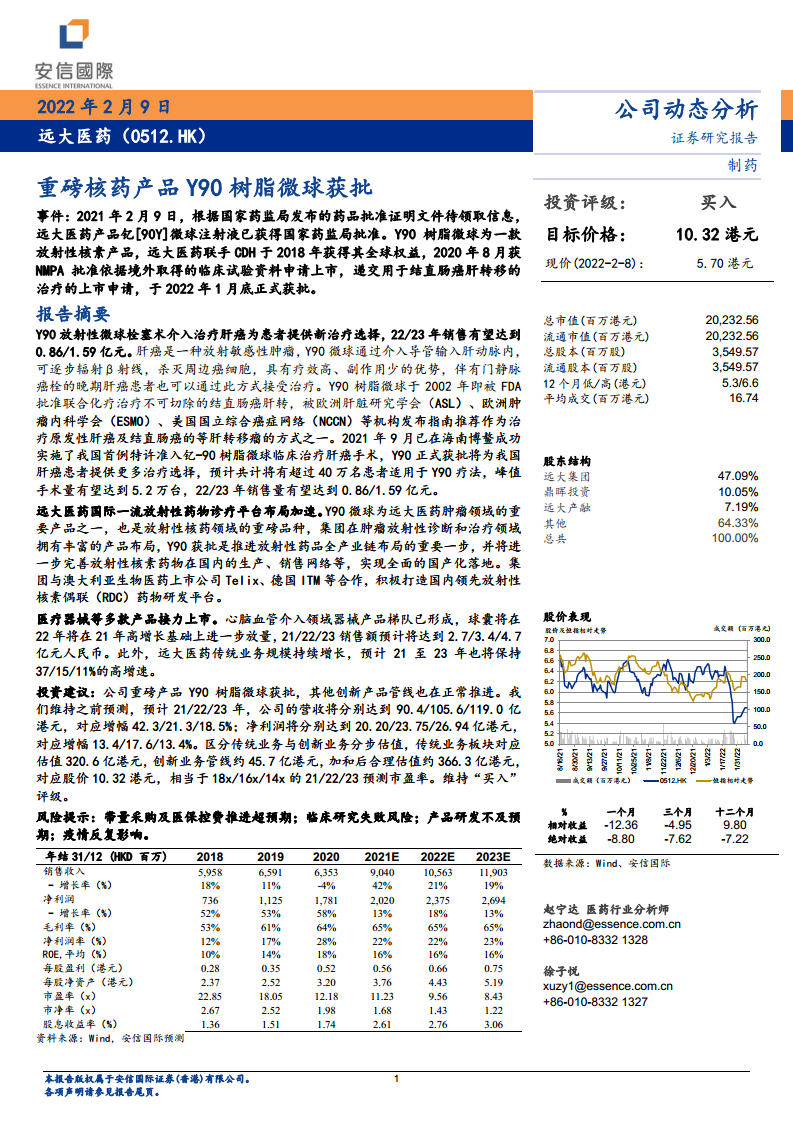 远大医药(00512):重磅核药产品Y90树脂微球获批