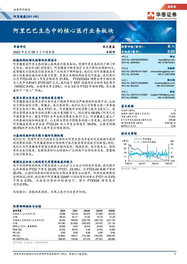 阿里健康(00241):阿里巴巴生态中的核心医疗业务板块
