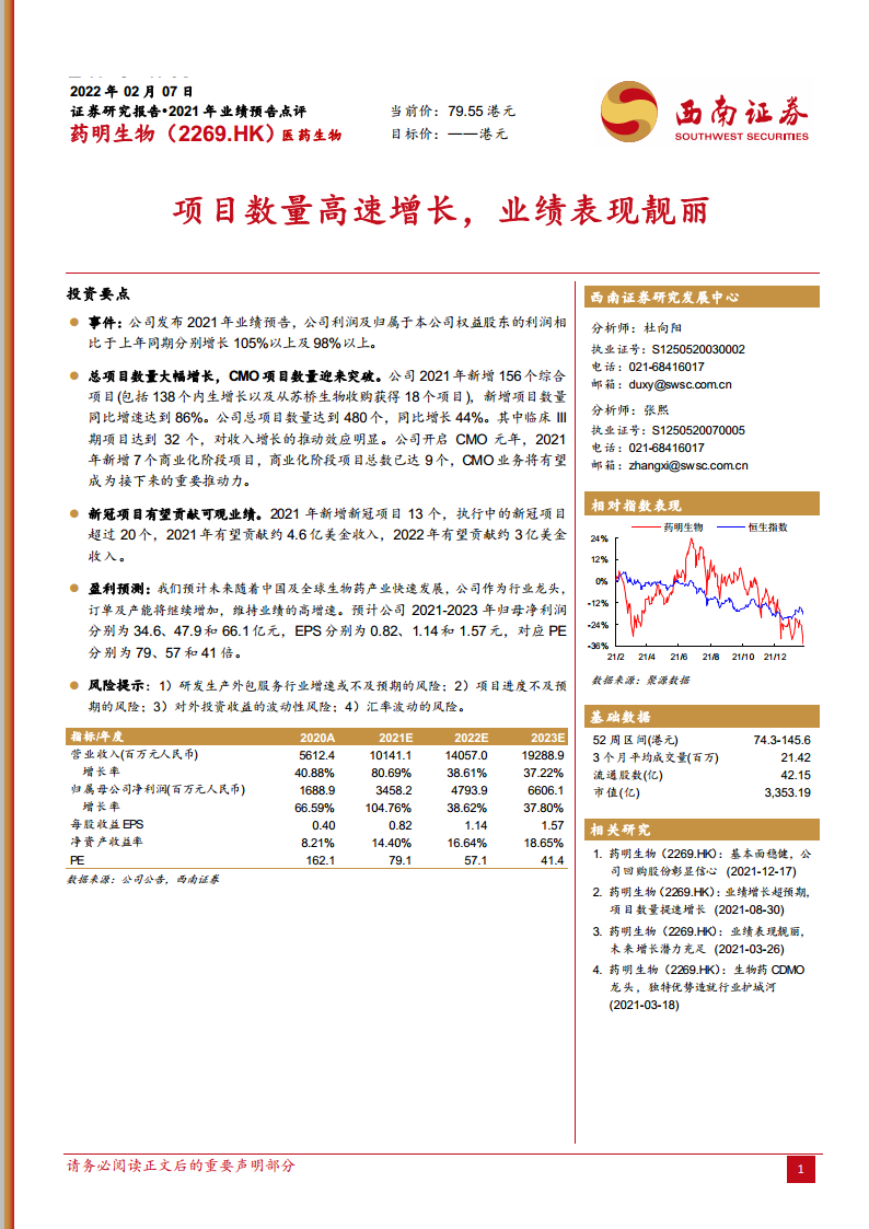 药明生物(02269):项目数量高速增长,业绩表现靓丽