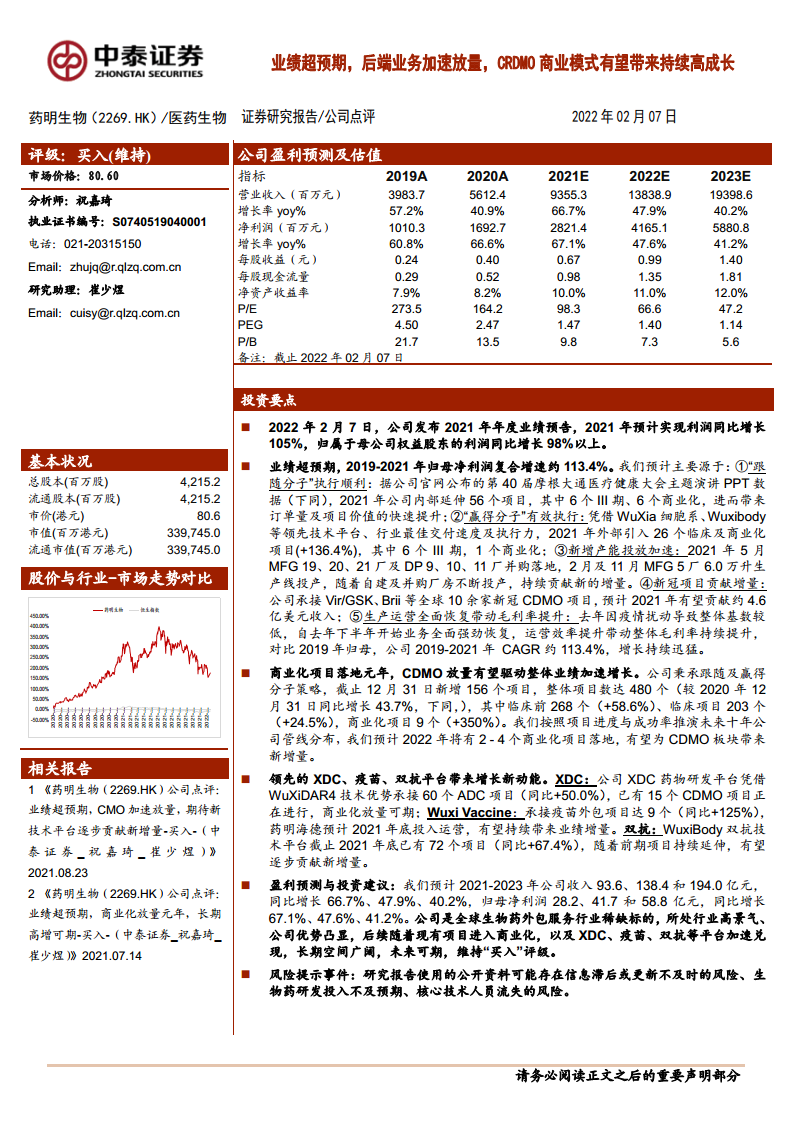 药明生物(02269):业绩超预期,后端业务加速放量,CRDMO商业模式有望带来持续高成长