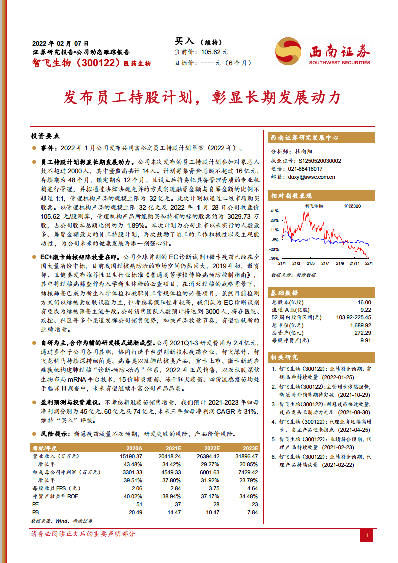智飞生物(300122):发布员工持股计划,彰显长期发展动力