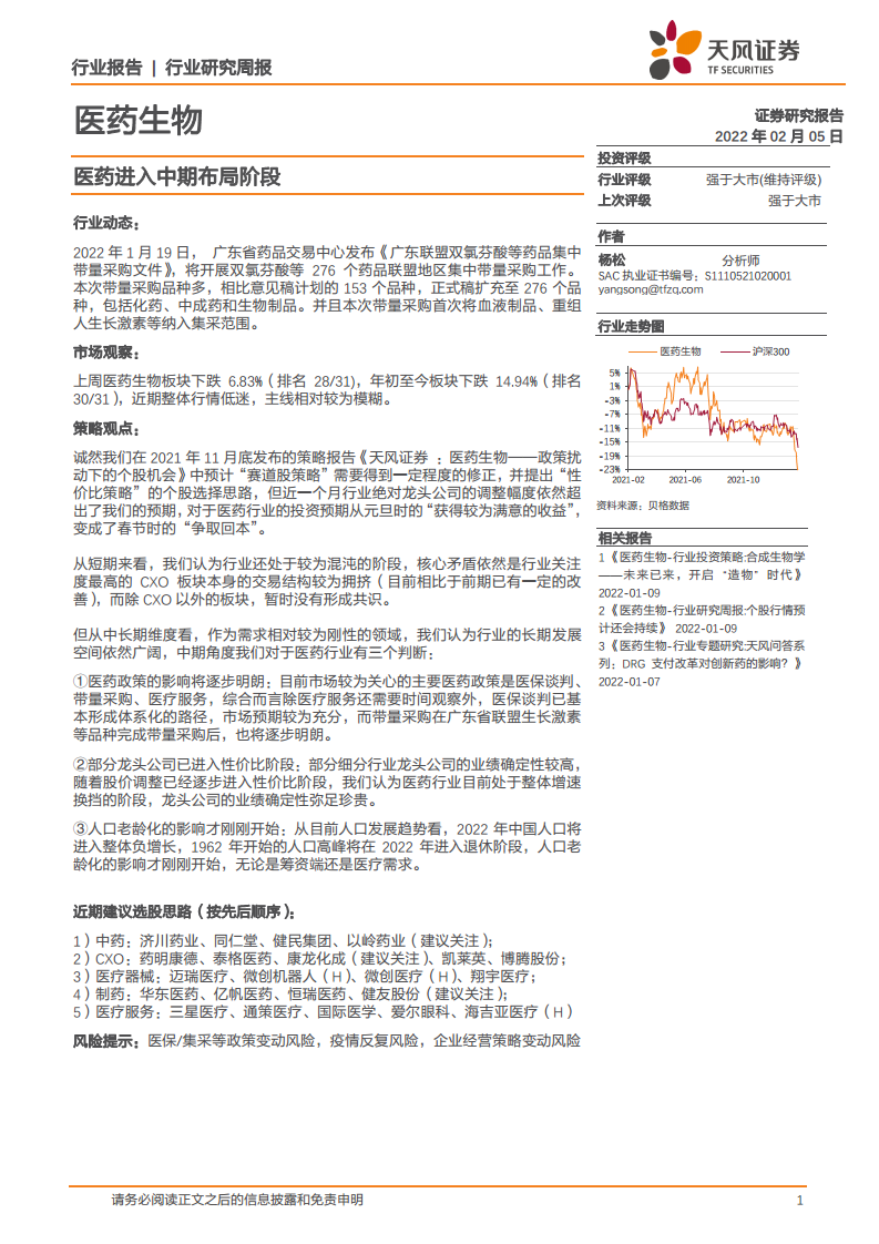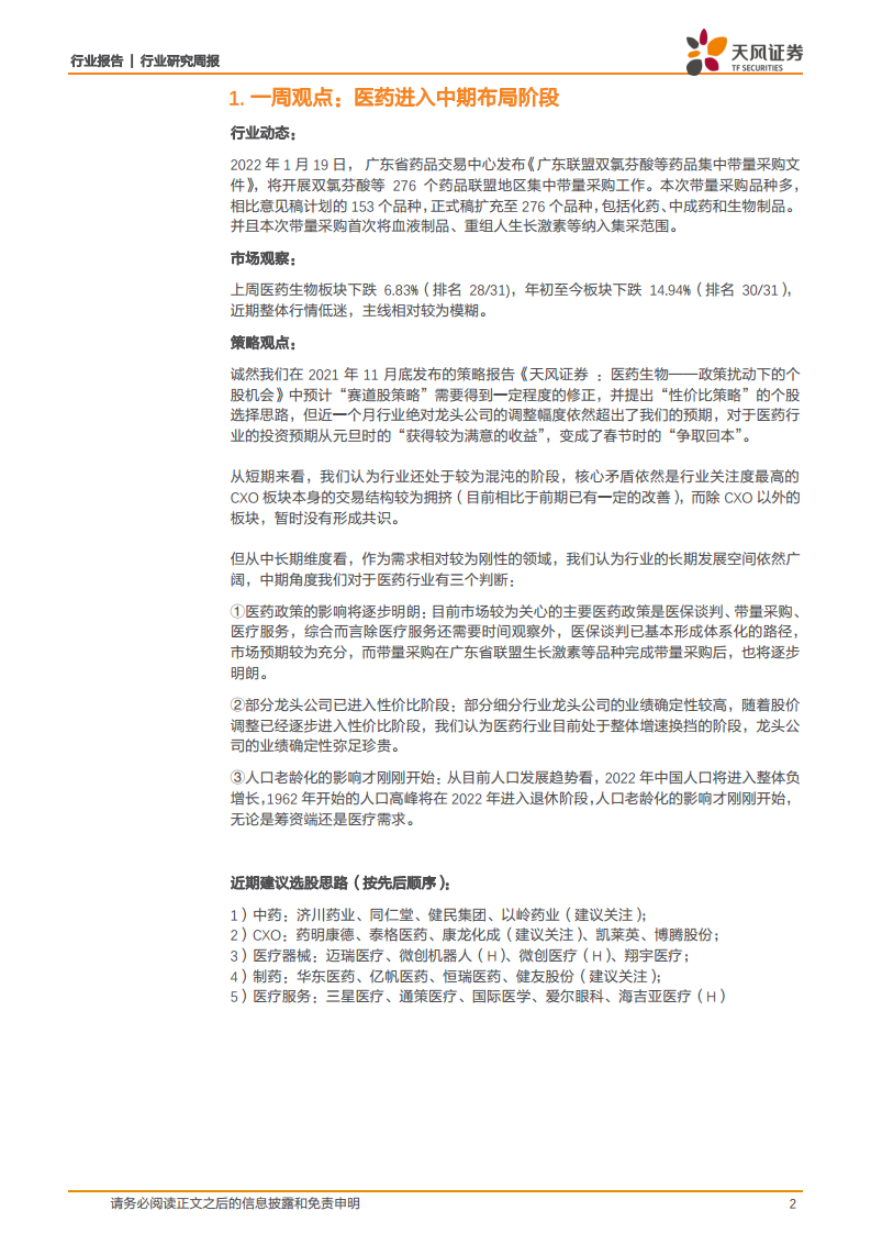 医药生物:医药进入中期布局阶段
