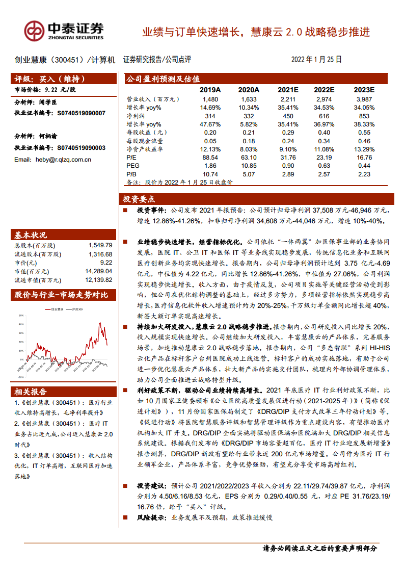 创业慧康(300451):业绩与订单快速增长,慧康云2.0战略稳步推进