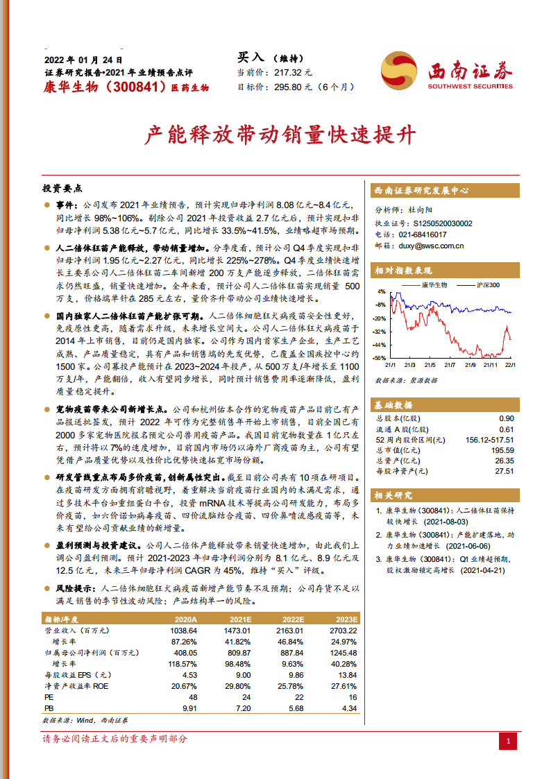 康华生物(300841):产能释放带动销量快速提升