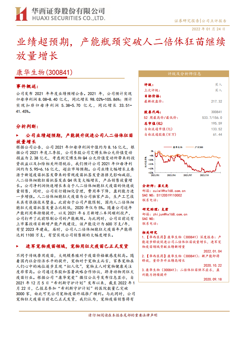 康华生物(300841):业绩超预期,产能瓶颈突破人二倍体狂苗继续放量增长