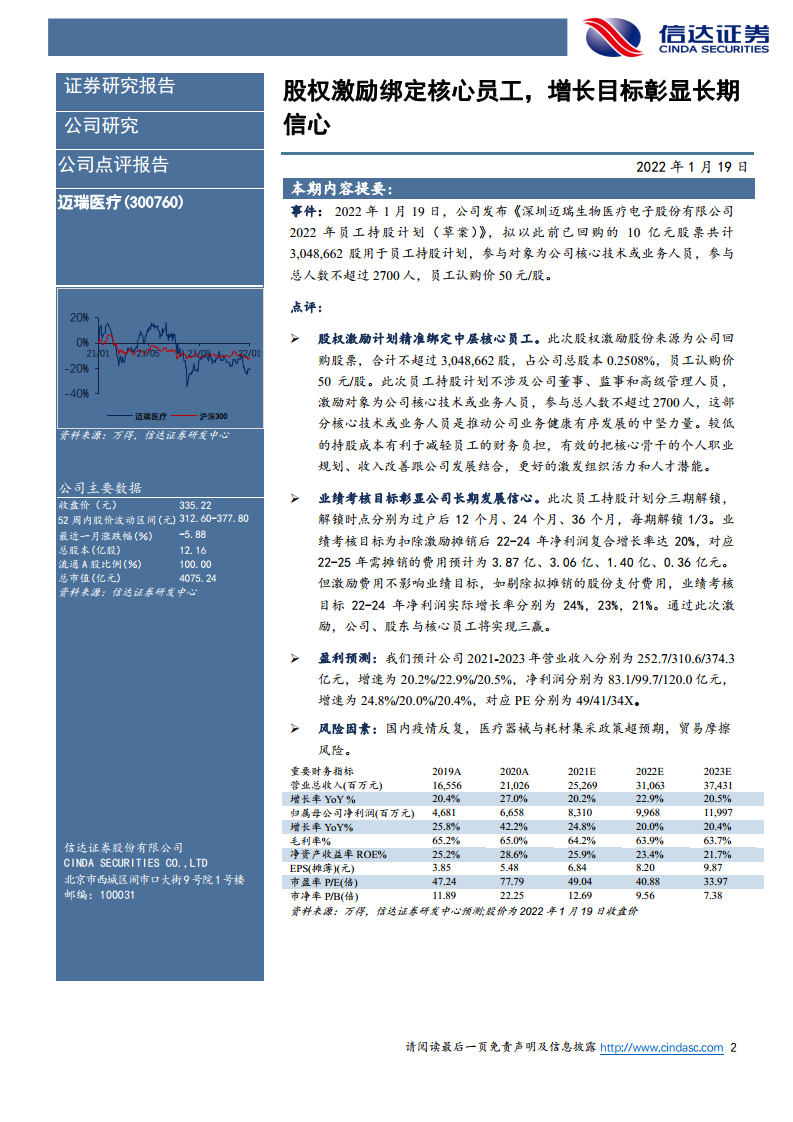 迈瑞医疗(300760):股权激励绑定核心员工,增长目标彰显长期信心