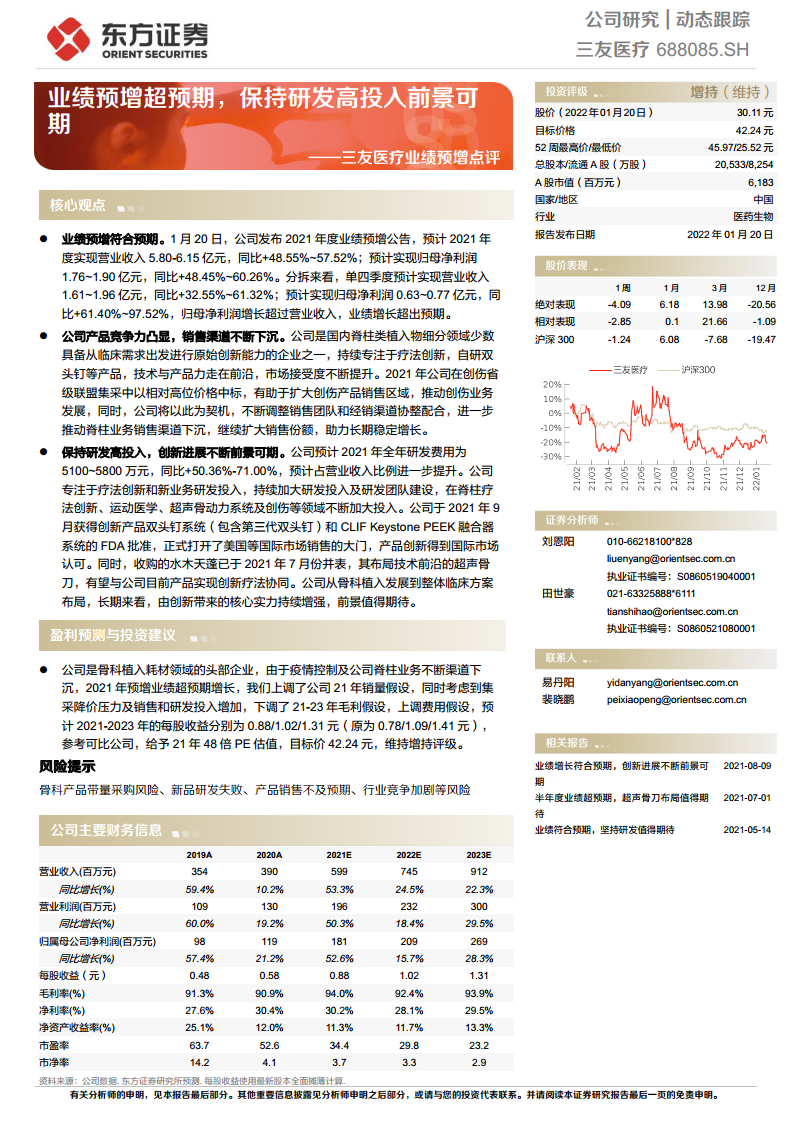 三友医疗(688085):业绩预增超预期,保持研发高投入前景可期