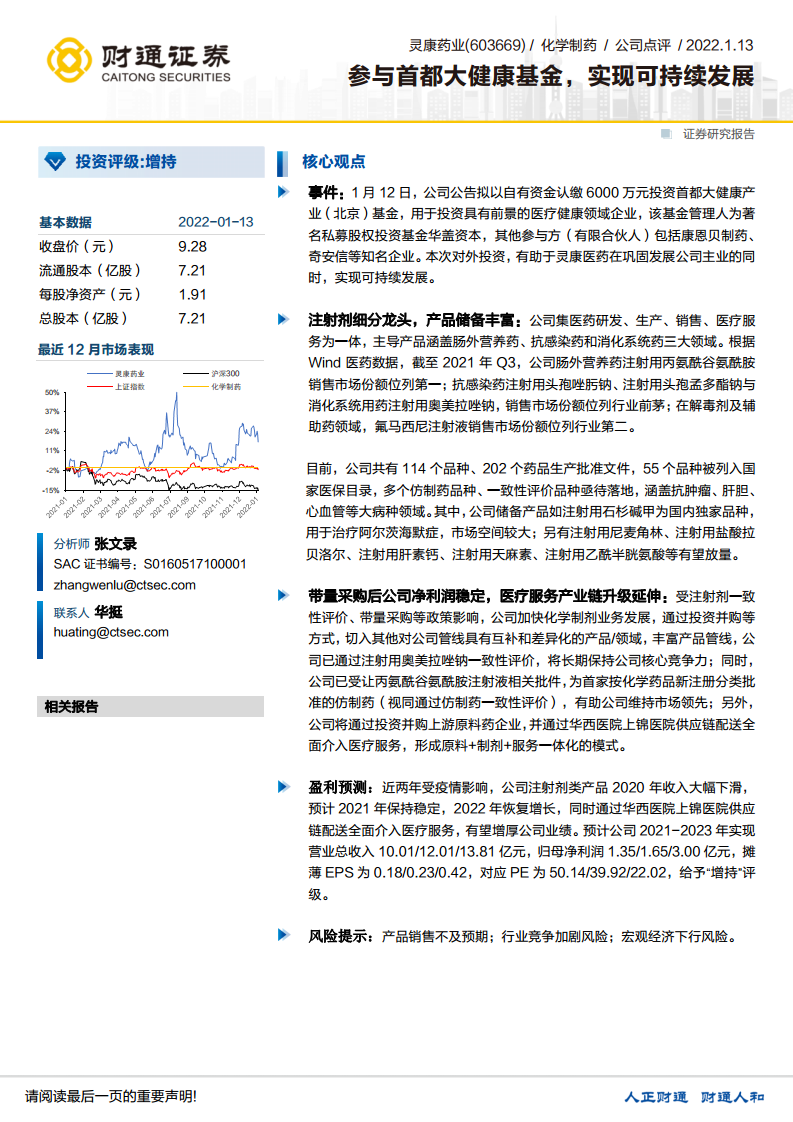 参与首都大健康基金,实现可持续发展