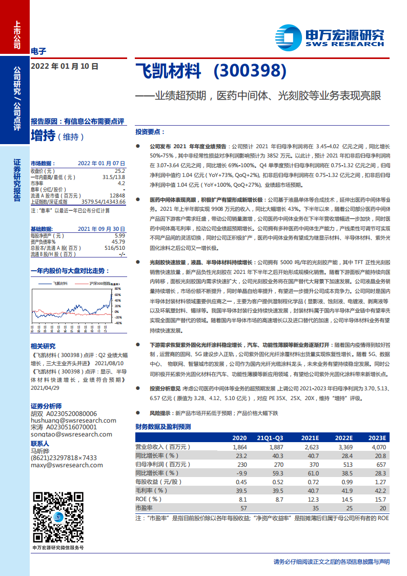 飞凯材料(300398):业绩超预期,医药中间体、光刻胶等业务表现亮眼