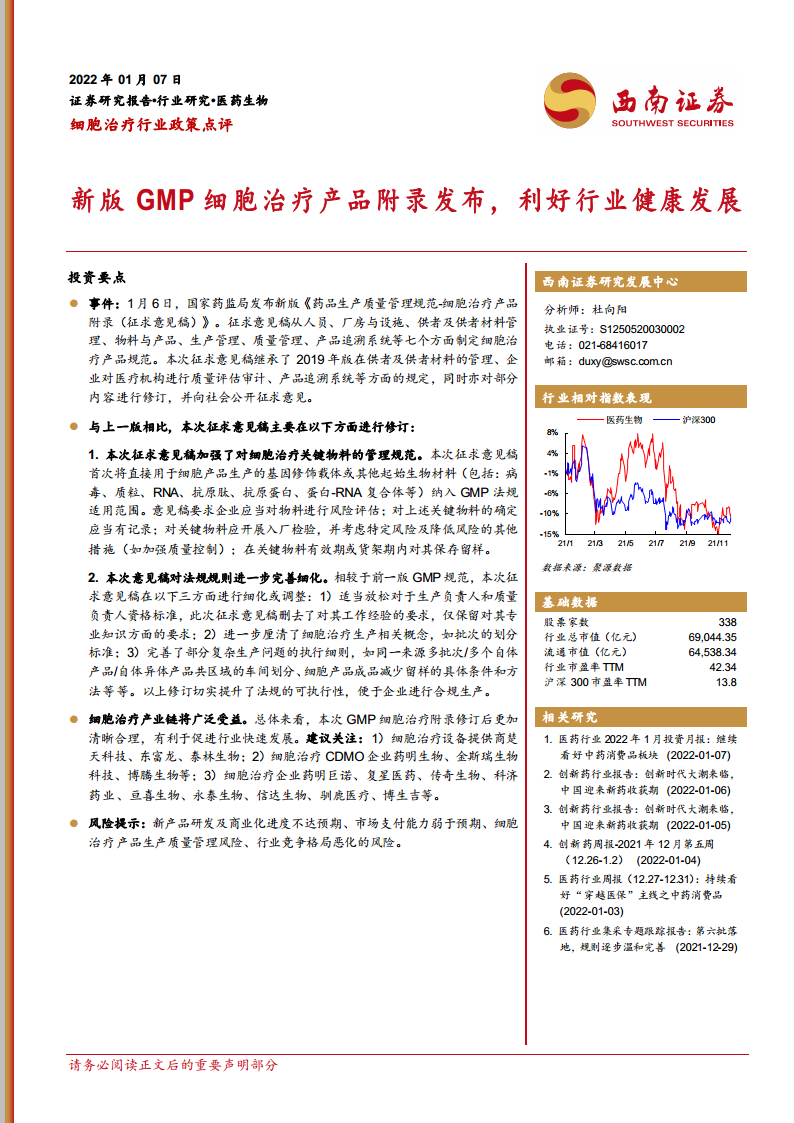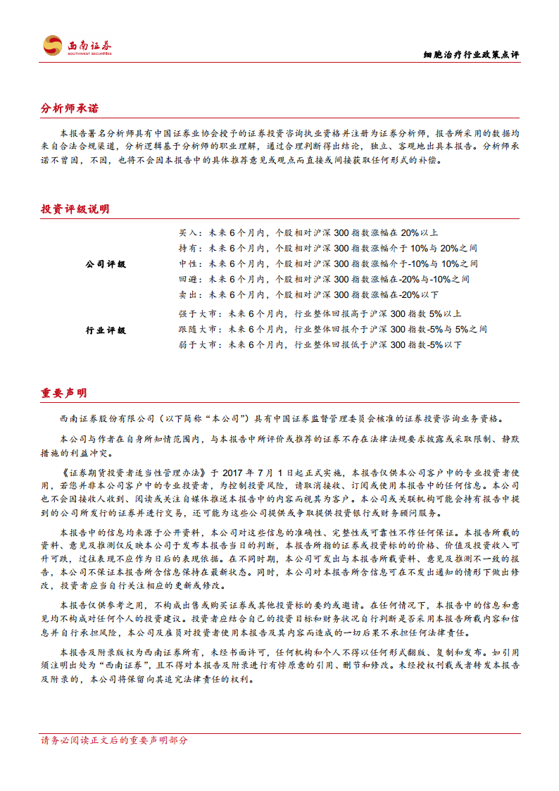 细胞治疗行业政策点评:新版GMP细胞治疗产品附录发布,利好行业健康发展
