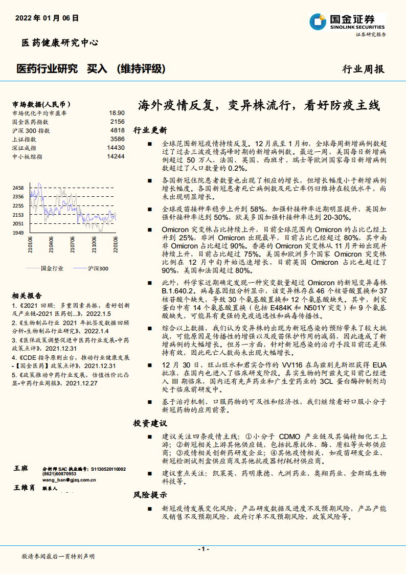 医药行业研究:海外疫情反复,变异株流行,看好防疫主线