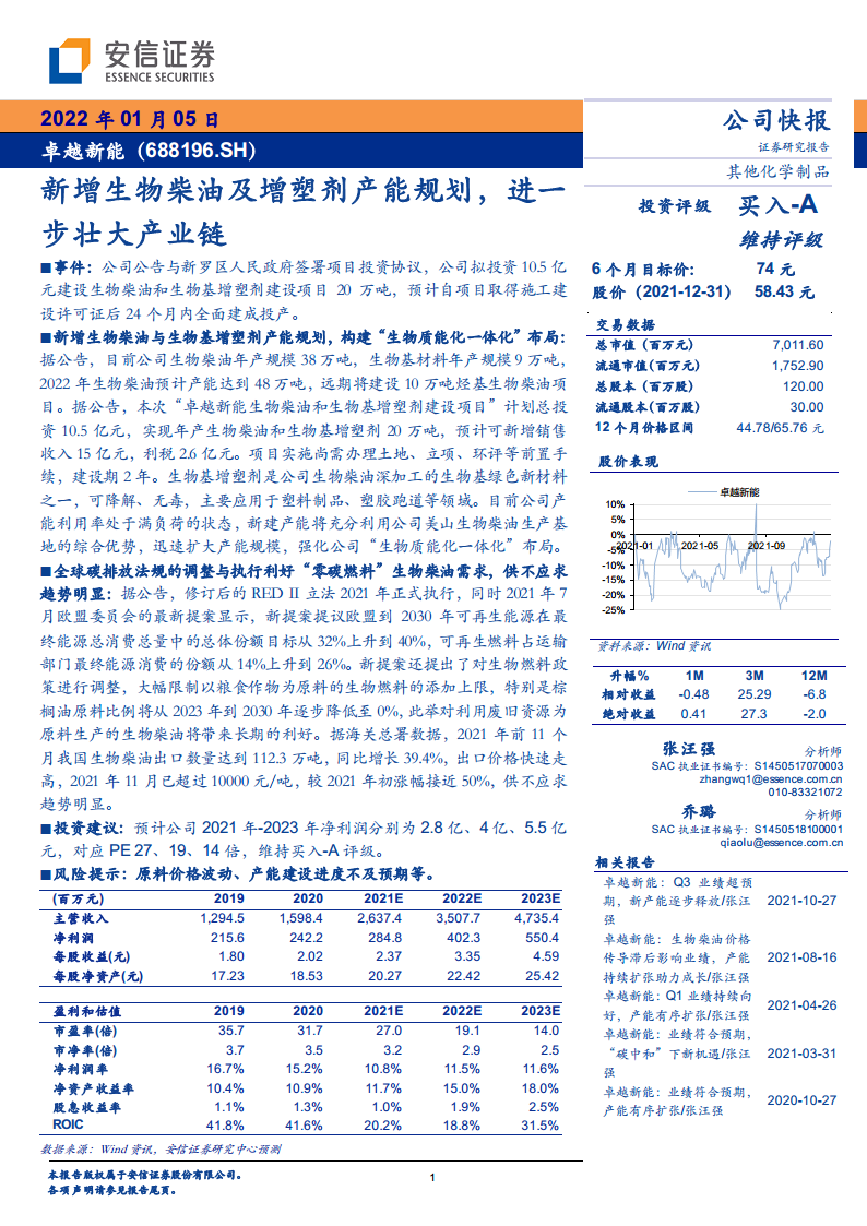 卓越新能(688196):新增生物柴油及增塑剂产能规划,进一步壮大产业链
