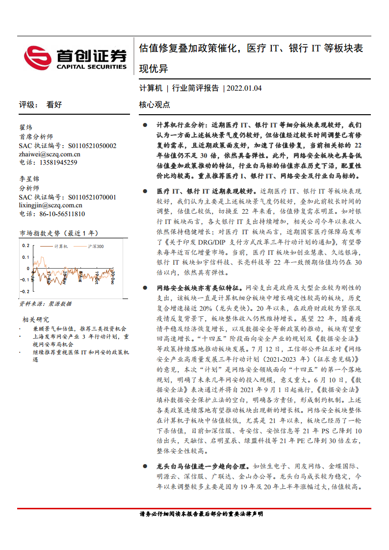 计算机行业简评报告:估值修复叠加政策催化,医疗IT、银行IT等板块表现优异