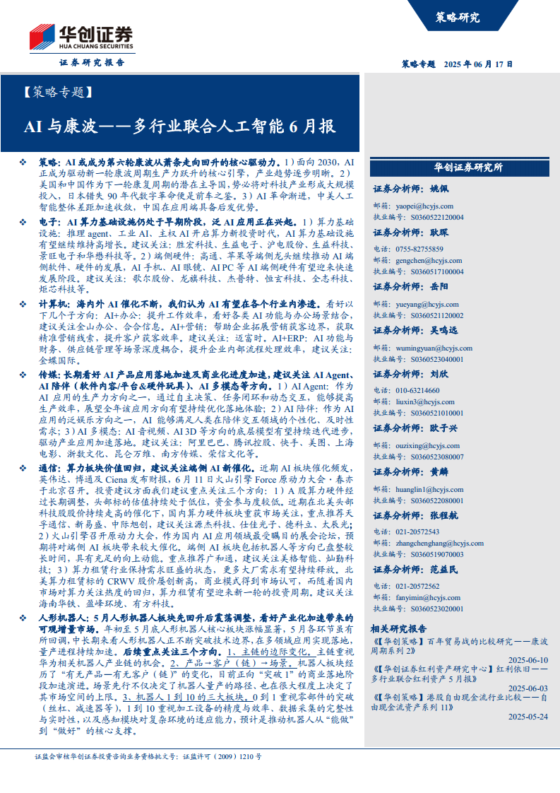 多行业联合人工智能6月报:AI与康波