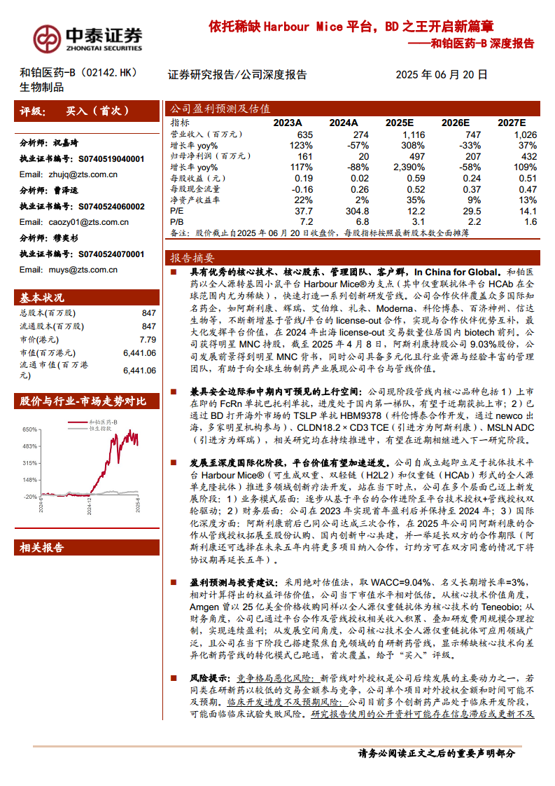 和铂医药-B(02142):深度报告:依托稀缺HarbourMice平台,BD之王开启新篇章