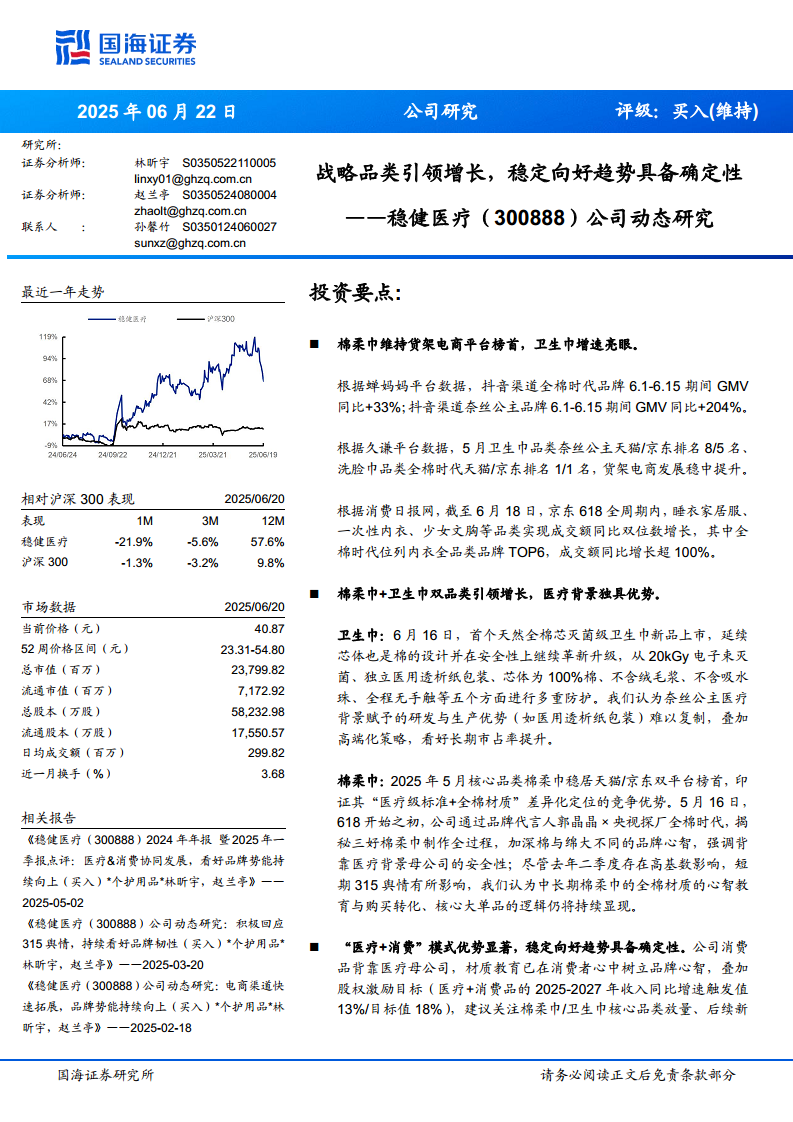 稳健医疗(300888):公司动态研究:战略品类引领增长,稳定向好趋势具备确定性
