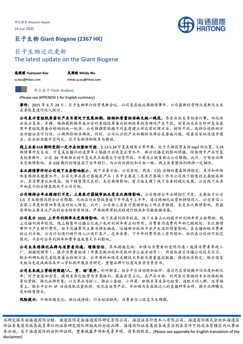 巨子生物(02367):巨子生物近况更新
