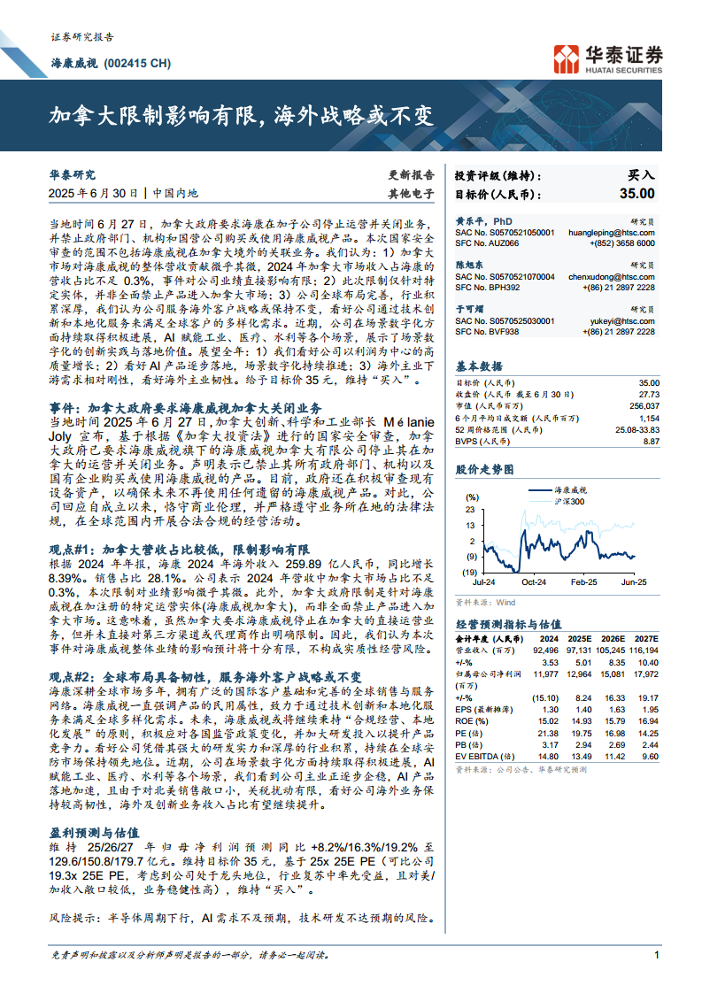 海康威视(002415):加拿大限制影响有限,海外战略或不变