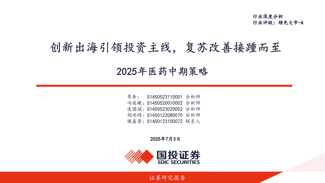 2025年医药中期策略:创新出海引领投资主线,复苏改善接踵而至