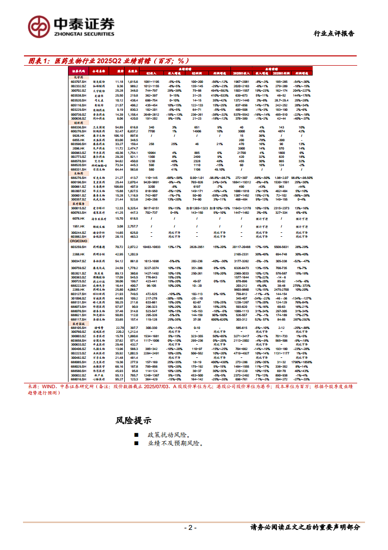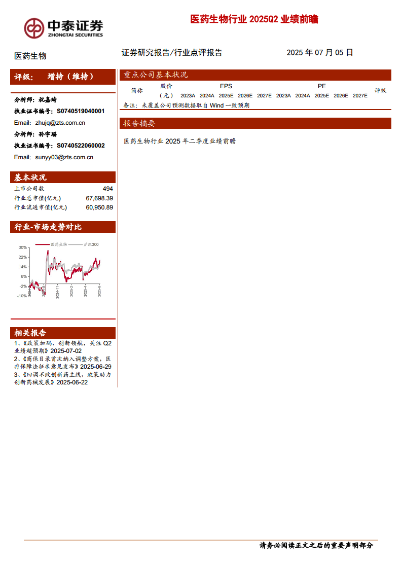 医药生物行业2025Q2业绩前瞻