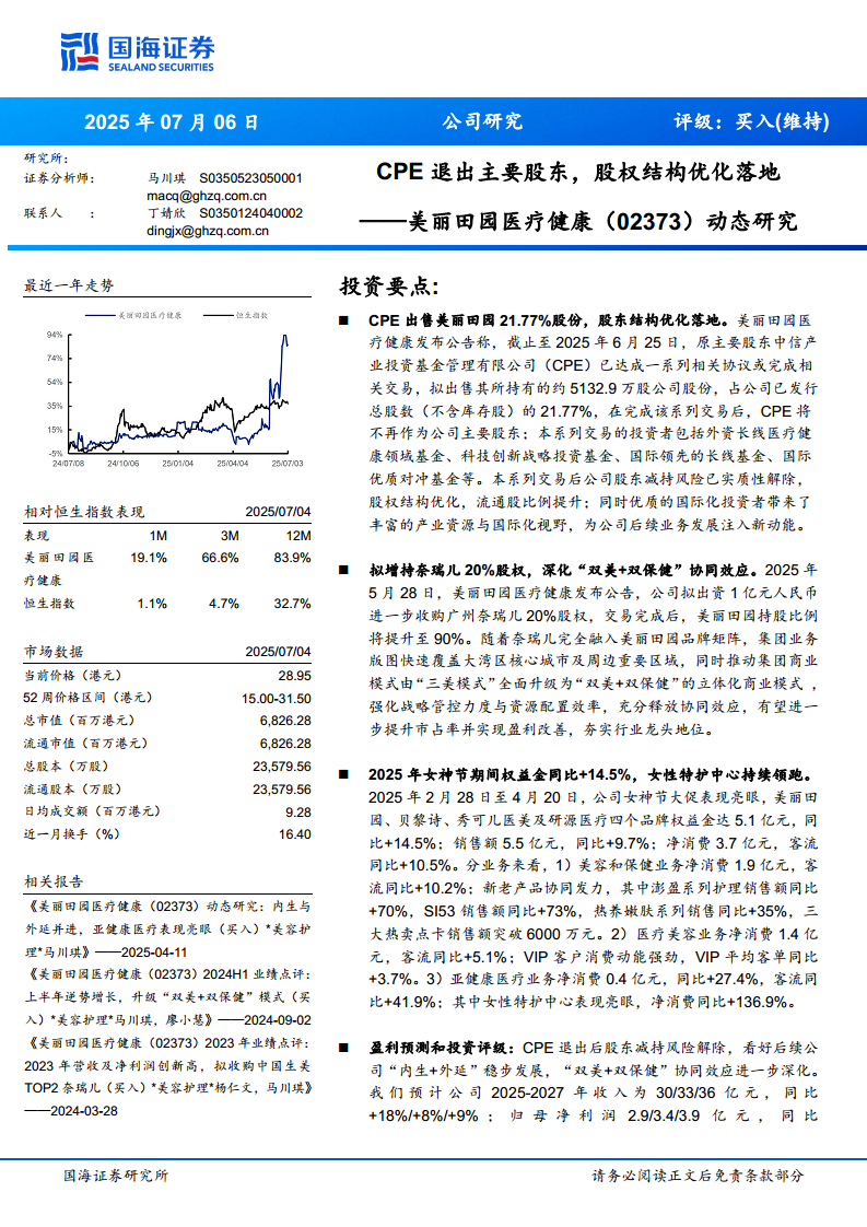 美丽田园医疗健康(02373):动态研究:CPE退出主要股东,股权结构优化落地