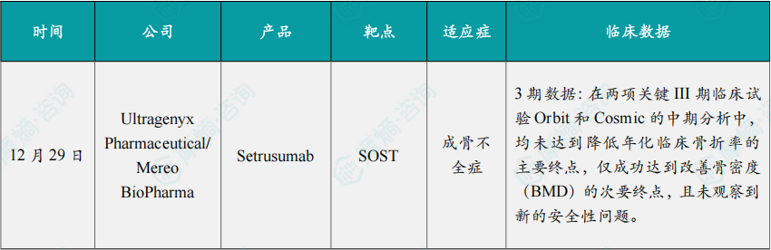 (1)Ultragenyx和Mereo合作药物setrusumab两项3期试验失败