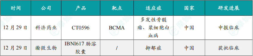 12月29日,科济药业宣布已向中国国家药品监督管理局(NMPA)提交通用型BCMA CAR-T产品 CT0596 的两项新药临床试验(IND)申请,以分别启动治疗复发/难治性多发性骨髓瘤(R/R MM)及原发性浆细胞白血病(pPCL)的1b/2期临床试验。
