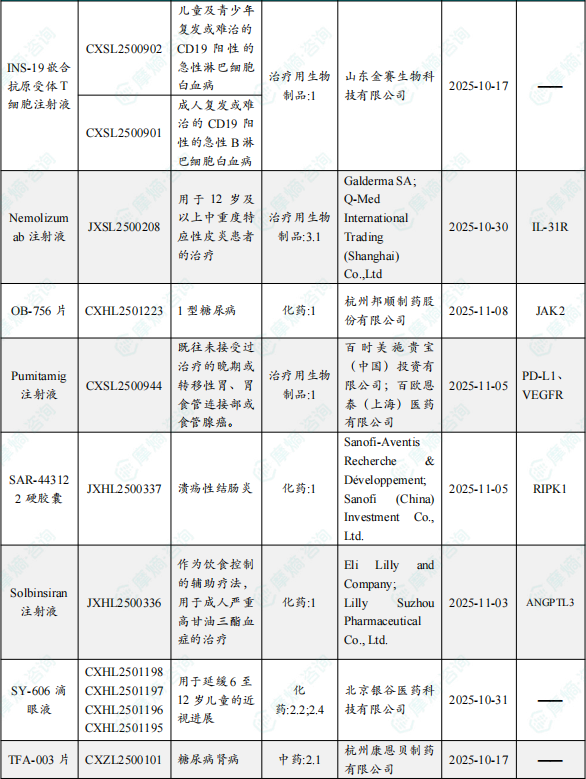 1.1.3 本周获批上市创新药信息速览