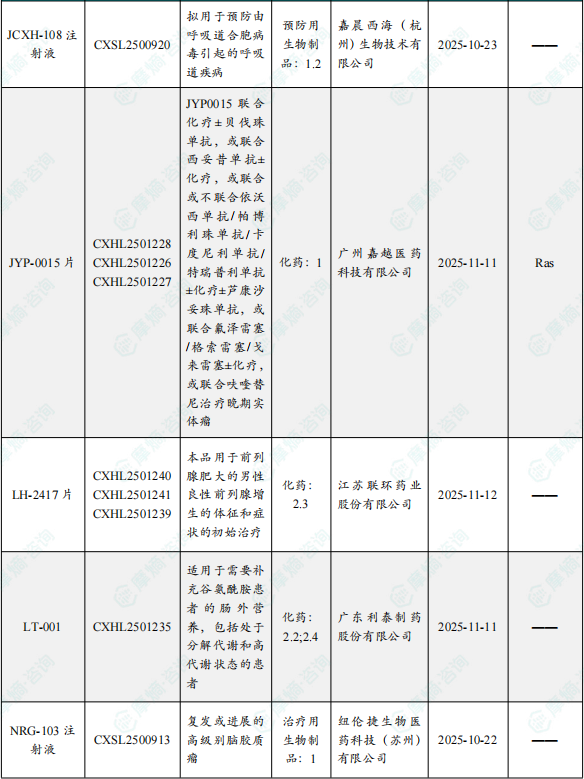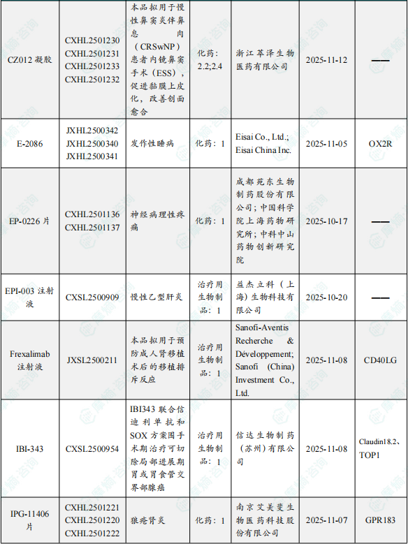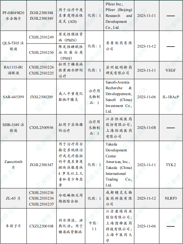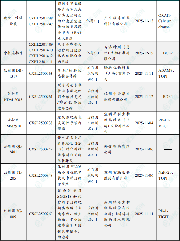 备注:(1)此处未包括补充申请之情形;(2)此处所列创新药/改良型新药,主要是指CDE受理批准的1类、2类、5.1类以及生物制品3.1类和3.2类。(3)更多获批临床信息及研发进展详情及相关靶点全局分析等,可通过摩熵中国药品审评数据库获取并下载EXCEL表格。
