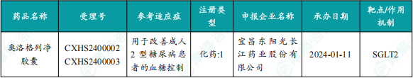 1月16日,国家药品监督管理局批准宜昌东阳光长江药业股份有限公司申报的1类创新药 奥洛格列净胶囊(商品名:东泽安)上市,该药适用于改善成人2型糖尿病患者的血糖控制。