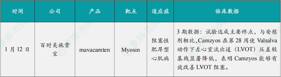 (1)百时美施贵宝别构心肌肌球蛋白抑制剂3期临床试验结果积极