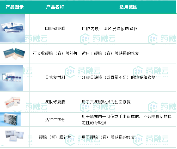 正海生物已上市再生材料产品及用途